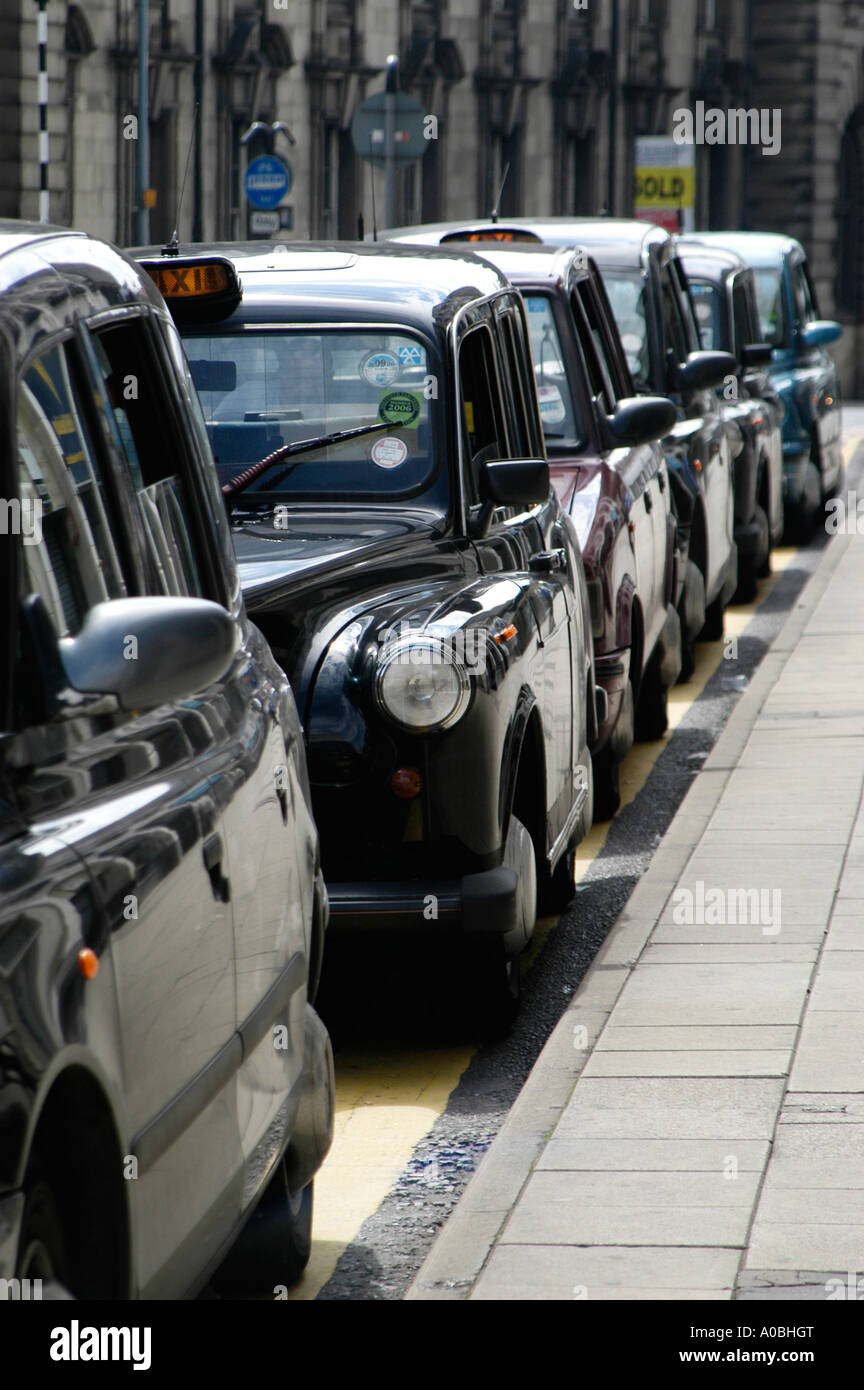 Row Of Black Taxi Cabs At A Rank In Sheffield England Stock Photo Alamy
