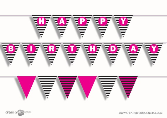 Happy Birthday Stripes Printable Banner Black White Pink Etsy